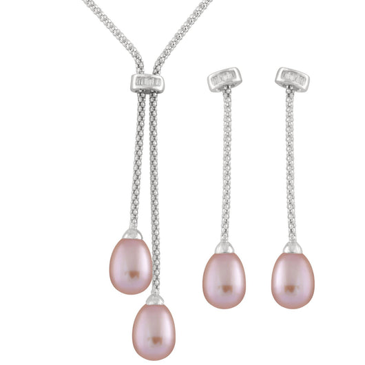 Fancy Sterling Silver necklace and matching earrings with 7-8mm and 8-9mm rice pearls.